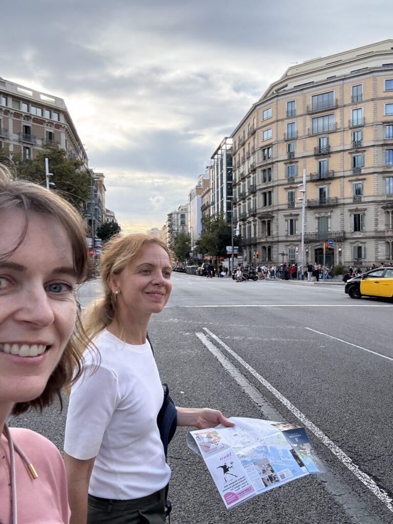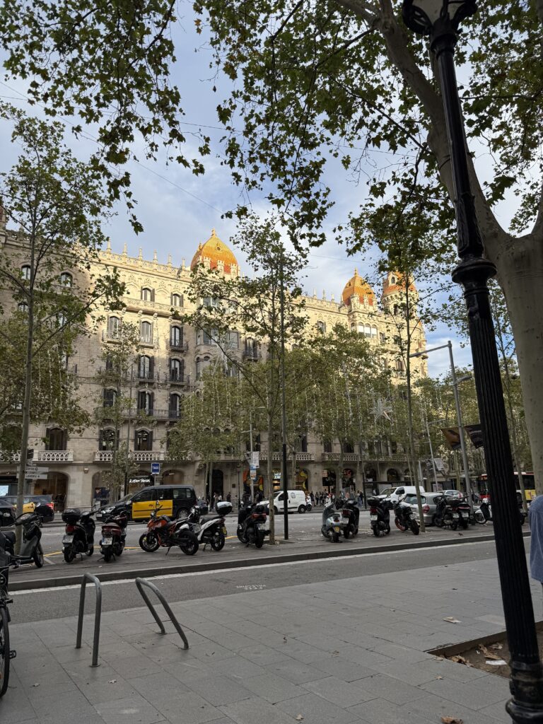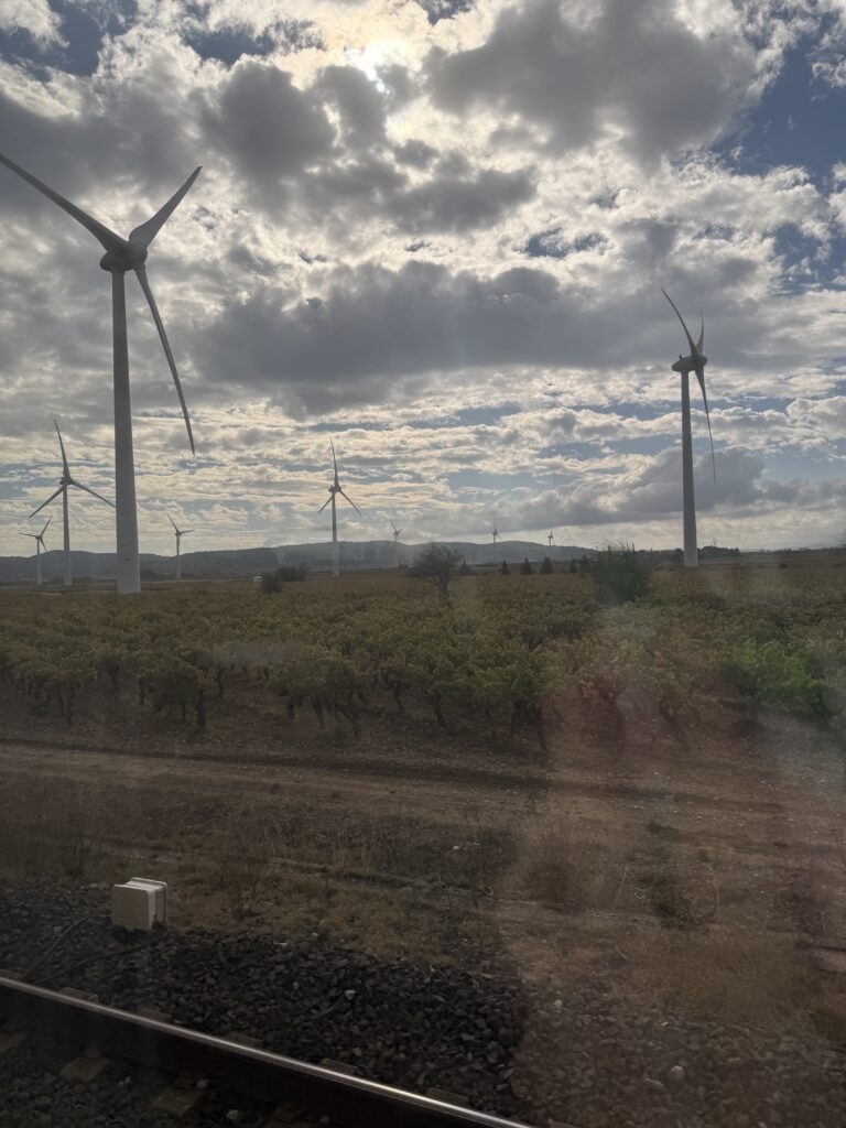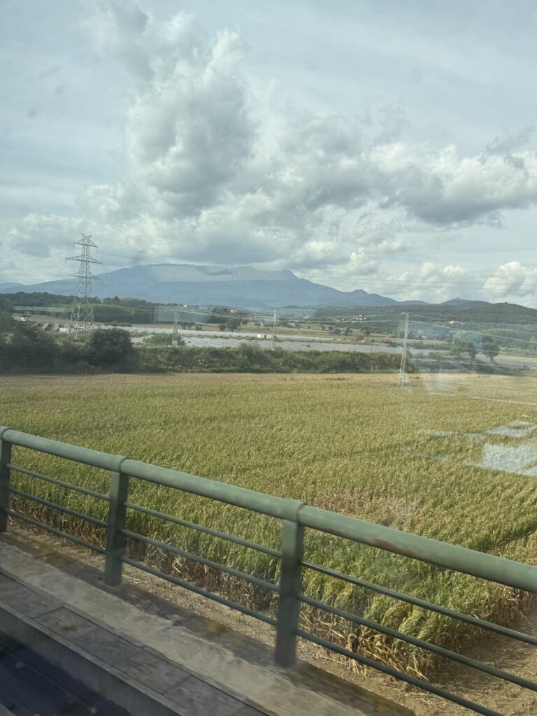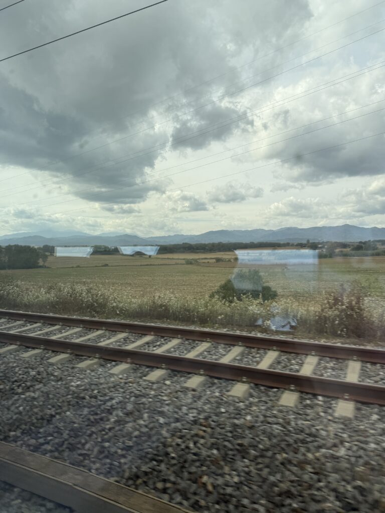 We woke up to a wet, rainy morning. Stefanie made crepe batter and then handed the work to Carl-Phillipe, who provided a hearty breakfast! In a flurry of extra whipped corner driving (“with this Monday bank traffic”) we were delivered to the train station for our 4 hour journey to Spain. I enjoyed watching the scenery change. We had nice seats for the first trains but had to connect to a different train and lower class in Narbonne for the remainder of the journey. But it was still fairly pleasant. Also at Narbonne we popped out to grab snacks at a corner market. The landscape became more and more “California” to me, and the sun came out! At Barcelona Sants station we got fairly lost, but kind strangers helped us fumble to the right train to our hotel.