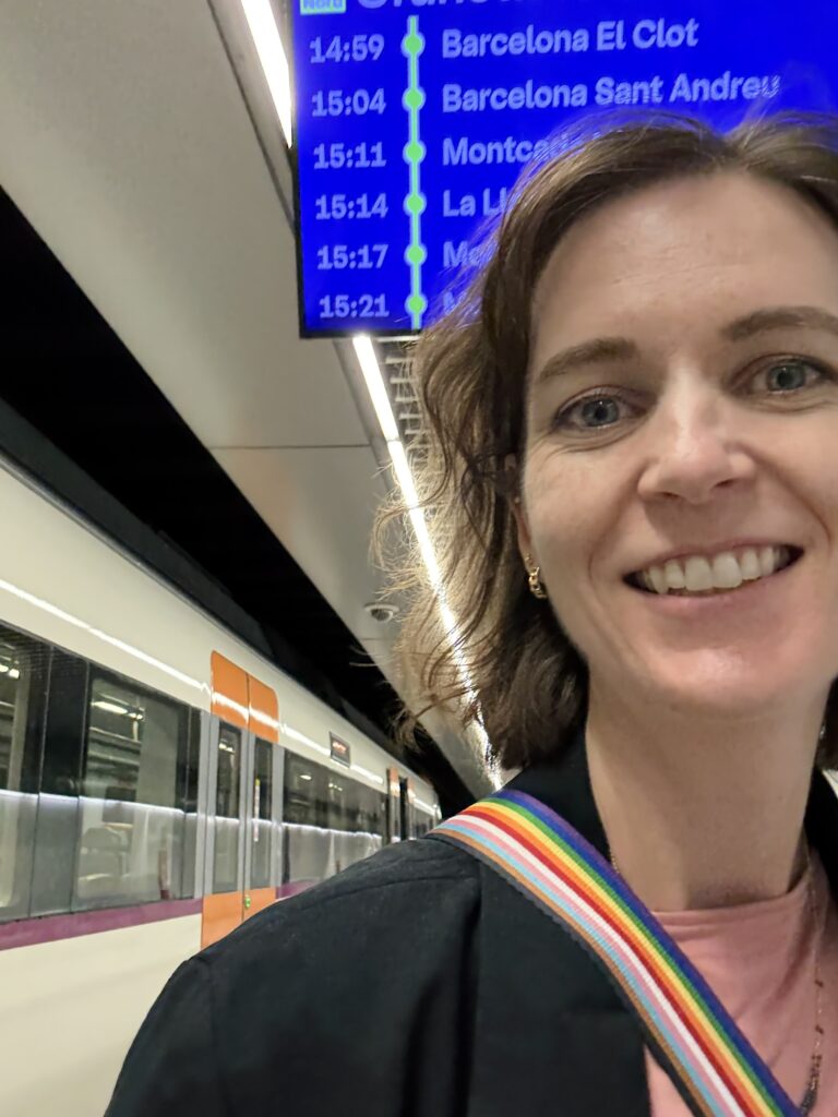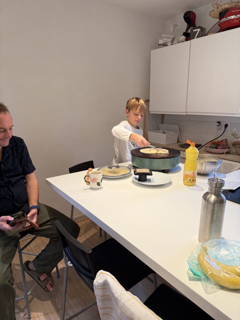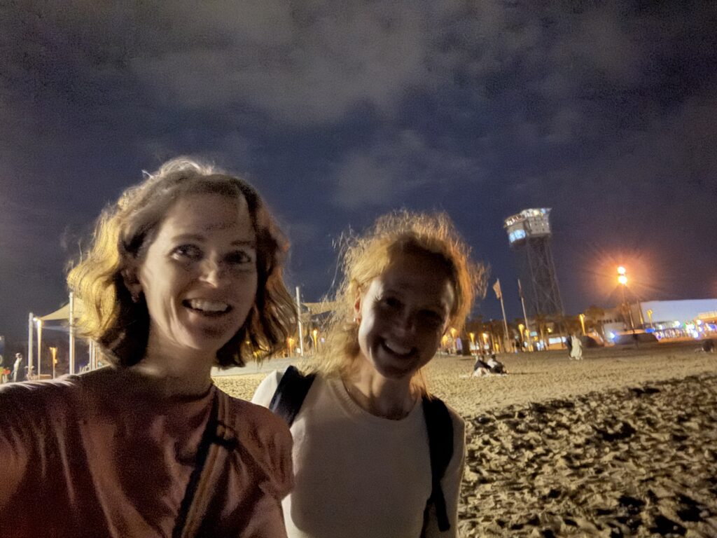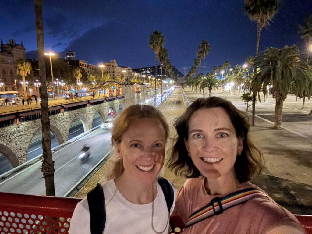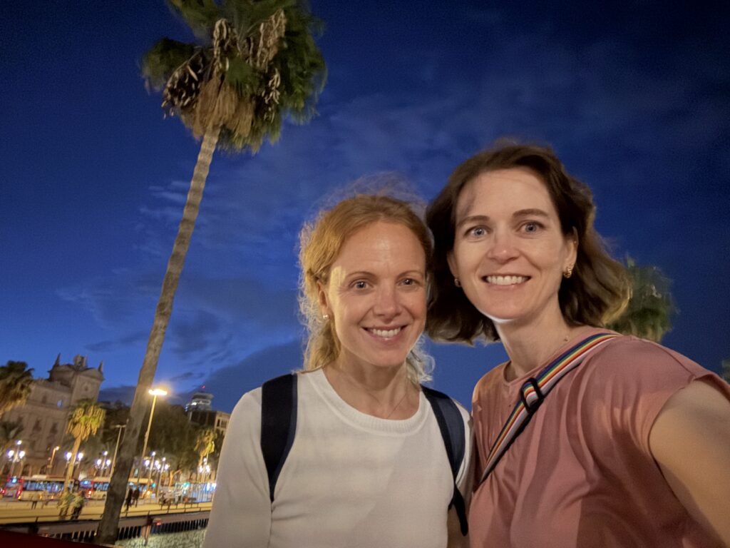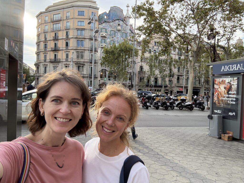 We woke up to a wet, rainy morning. Stefanie made crepe batter and then handed the work to Carl-Phillipe, who provided a hearty breakfast! In a flurry of extra whipped corner driving (“with this Monday bank traffic”) we were delivered to the train station for our 4 hour journey to Spain. I enjoyed watching the scenery change. We had nice seats for the first trains but had to connect to a different train and lower class in Narbonne for the remainder of the journey. But it was still fairly pleasant. Also at Narbonne we popped out to grab snacks at a corner market. The landscape became more and more “California” to me, and the sun came out! At Barcelona Sants station we got fairly lost, but kind strangers helped us fumble to the right train to our hotel.