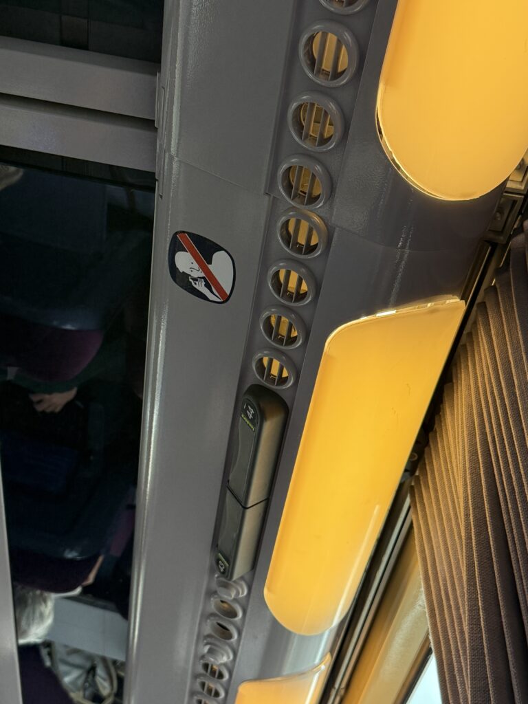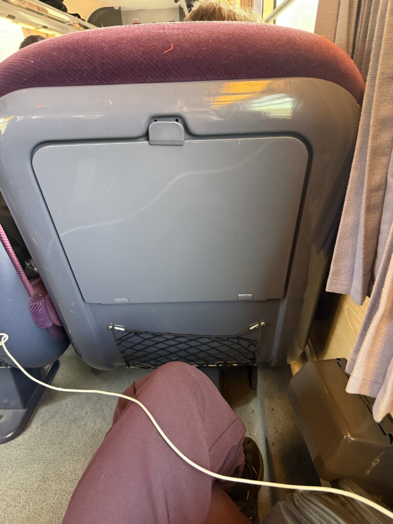 After 4 gate changes I got on the plane to Frankfurt. The pilot said there was a lot of traffic. In Frankfurt I purposefully walked in circles for exercise and had lunch in the lounge. I wasn’t sure how to handle sleep. I wanted to stay awake the whole flight so I can sleep when I get to Colorado in the evening. But, as Sam says, sleeping is time travel. I aimed for a good nap after the meal service to match the plane lighting, and I got about 3 hours. The seats were spacious and comfortable (except the headrest).