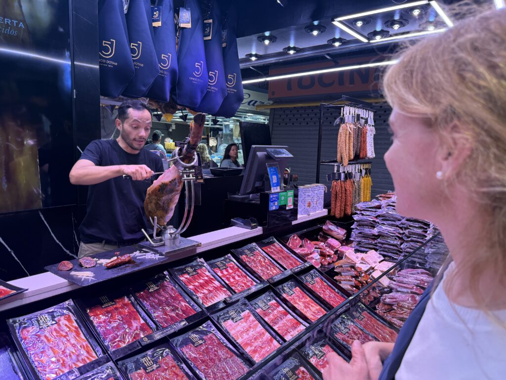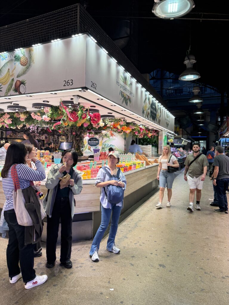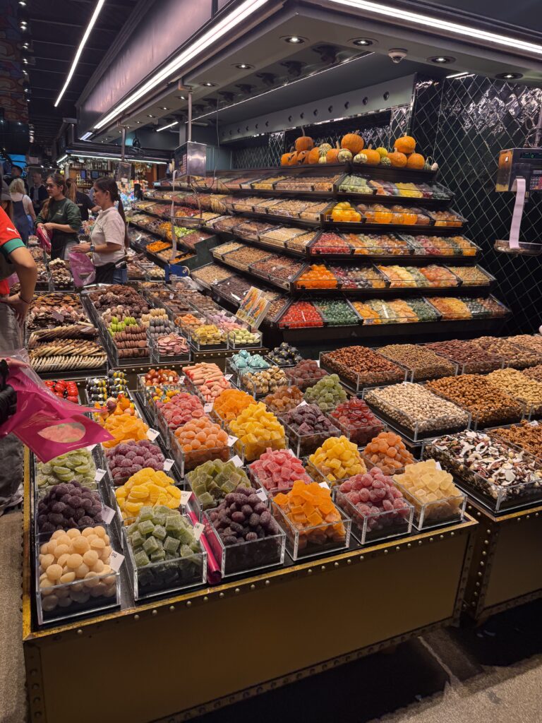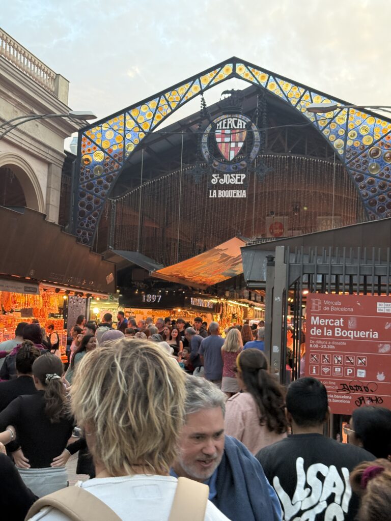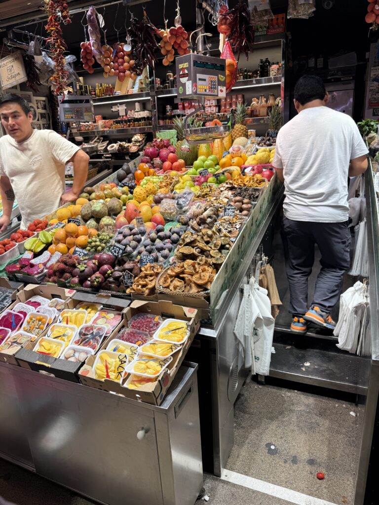 satisfied, we hit La Rambla (with all the other tourists) and admired the architecture while popping in stores. Along the way I spotted the Josep Bouquer market and Stefani clapped her hands in joy because it was closed every time she tried to go in her last visit. We shared some more small bites and she almost bought some jambon to take home.