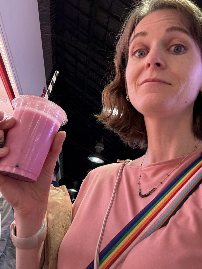Before this trip, I found a vegan patisserie chain called Land + Monkeys. We hadn’t been around their locations yet, so this is one of the reasons I came to Les Halles today. Oh my!! The chocolat chaud with oat milk was so good!! The best hot chocolate I could drink without concern in years!! I’ll be honest, the pastries were subpar for Paris. I still enjoyed them and the lack of pill supplementation.