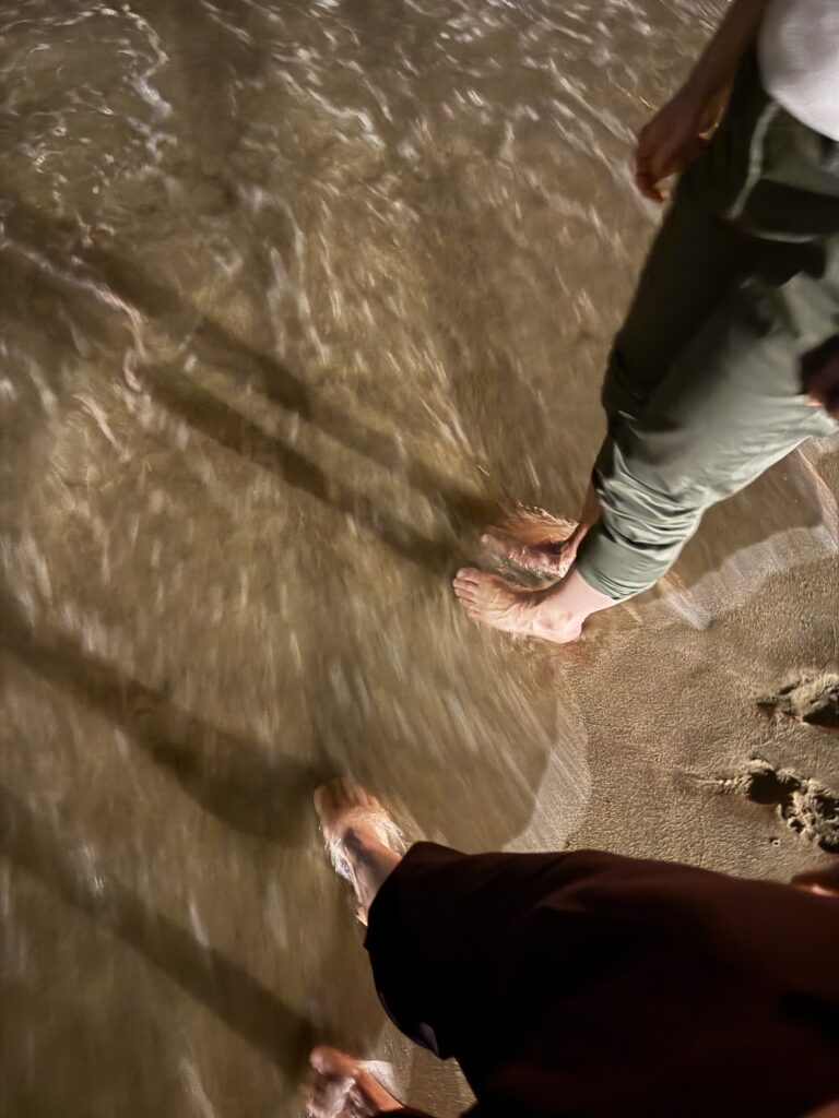 Our final destination this day was la mer, and we found her! Perhaps darker and colder than is ideal. Nevertheless we doffed our shoes and chased the waves, then walked down the shore. It was delightfully childlike. Afterward we washed our feet and walked all way back to the hotel. Our legs are tired but it was as reading to eat and walk so much after a morning train ride, and the water was nice too! Time to sleep again.