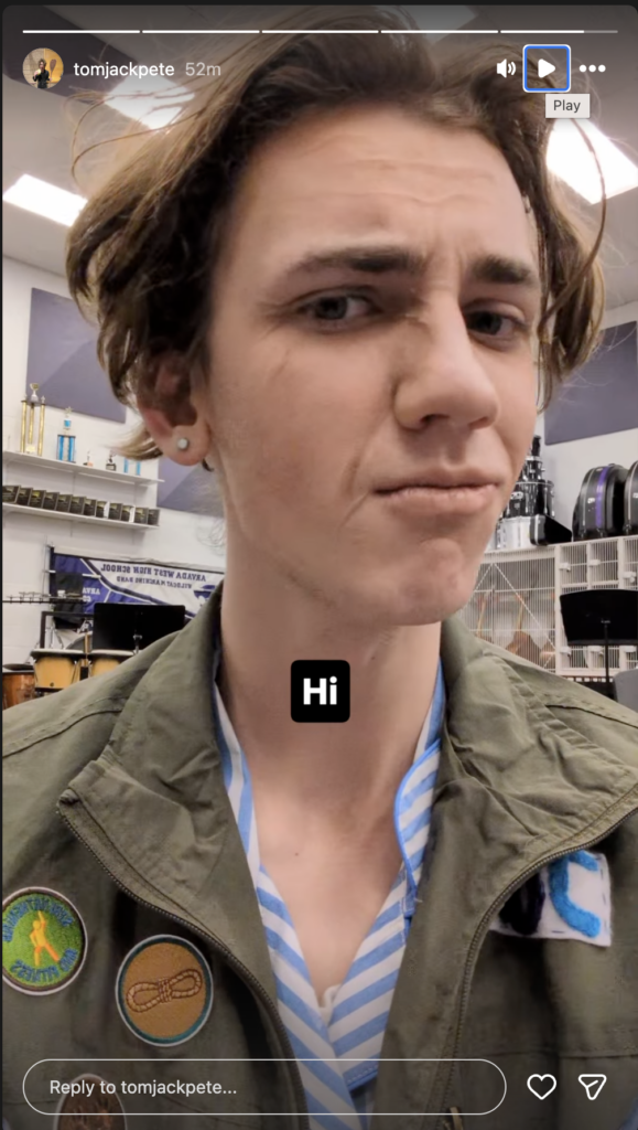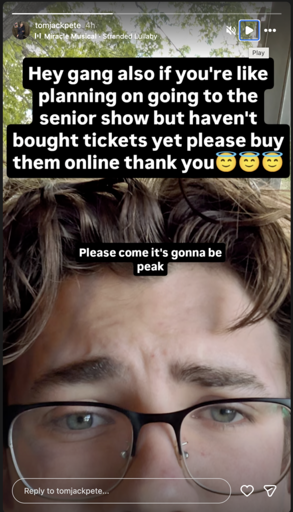 Jack debuted as an actor this week in the senior-directed one act play “Our Place.” He had a lot of fun in this new theatrical setting – learning lines, taking direction, costumes fitting, make-up, everything! He did a great job and had a lot of fun with the process.